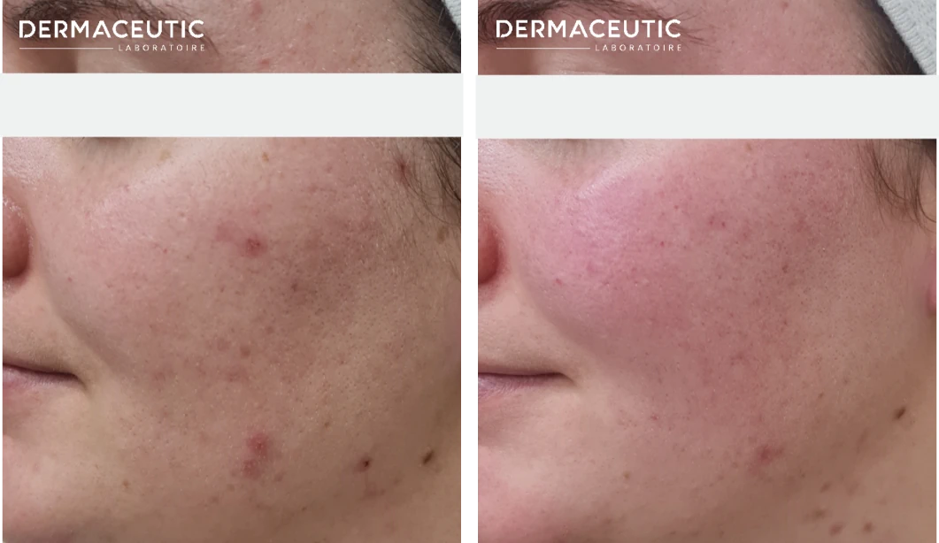 Po postopku je vidno mikro luščenje povrhnjice in rahla rdečica, vendar ne zahteva družbenega izostanka.